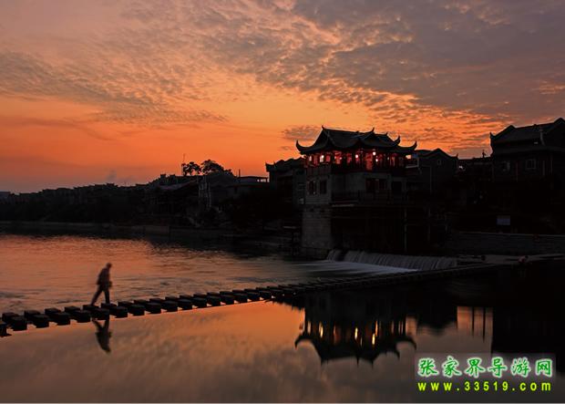 乾州古城城池小巧玲瓏,石城墻垣逶迤回環(huán)1980m,高5m,方溶江穿城而過,沿江古街上被歷代行人的腳磨得光亮的青石板,既自然又精巧地鑲嵌著,沿街建有苗族特有的民宅——吊腳樓,具有濃郁的民族風(fēng)格。