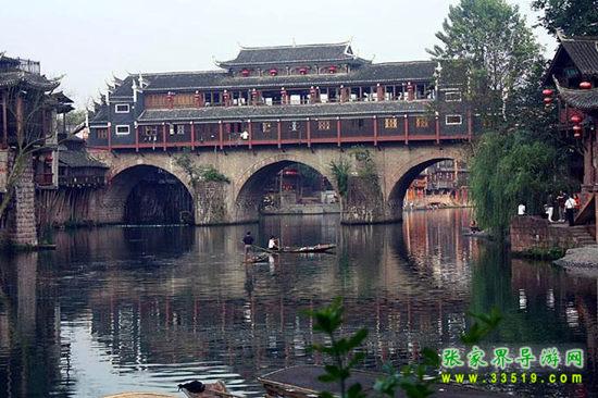 沱江河是古城鳳凰的母親河,她依著城墻緩緩流淌,世世代代哺育著古城兒女。坐上烏蓬船,聽著艄公的號子,看著兩岸已有百年歷史的土家吊腳樓,別有一番韻味。順?biāo)拢┻^虹橋一幅江南水鄉(xiāng)的畫卷便展現(xiàn)于眼前:萬壽宮、萬名塔、奪翠樓……一種遠(yuǎn)離塵世的感覺悠然而生。沱江的南岸是古城墻,用紫紅沙石砌成,典雅不失雄偉。城墻有東、北兩座城樓,久經(jīng)滄桑,依然壯觀。