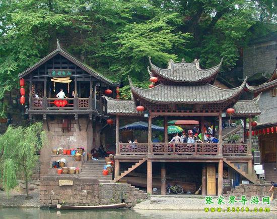 沱江河是鳳凰的母親河,她依著城墻緩緩流淌,世世代代哺育著古城兒女。坐上烏船,聽著艄公的號子,看著兩岸已有百年歷史的土家吊腳樓,別有一番韻味。