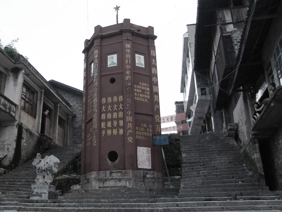 清嘉慶七年(1802),這里建成了一座石堡城,設(shè)東西南北4門,門樓上各有4座炮臺,420個垛口??谷諔?zhàn)爭時期,蔣介石的殘兵敗獎經(jīng)此地逃往四川。解放戰(zhàn)爭時期,劉鄧大軍也是從這里推進(jìn)大西南。解放后,城墻城門雖被毀壞,但翠翠島、吊腳樓、石板街依然保存完整。