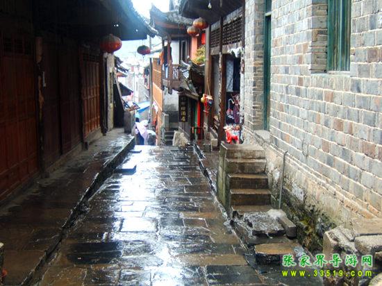 古鎮(zhèn)石板街遠(yuǎn)遠(yuǎn)望去,總感覺(jué)芙蓉鎮(zhèn)五里青石板街就像一本線裝古籍的書(shū)脊,書(shū)頁(yè)被上蒼之手打開(kāi),靜謐而又穩(wěn)重地?cái)傇谟纤舆?,那?shū)頁(yè)上凌空的吊腳樓和發(fā)生在樓里樓外的悲歡離合便隨歲月而動(dòng),演繹出許多鏗鏘溫馨、跌宕起伏的故事來(lái)……