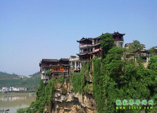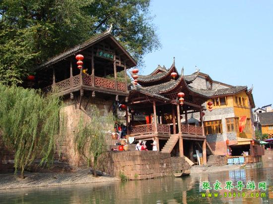 芙蓉鎮(zhèn)不僅是一個(gè)具有悠久歷史的千年古鎮(zhèn),也是融自然景色與古樸的民族風(fēng)情為一體的旅游勝地,又是猛洞河風(fēng)景區(qū)的門(mén)戶、一個(gè)尋幽訪古的最佳景點(diǎn)。四周是青山綠水,鎮(zhèn)區(qū)內(nèi)是曲折幽深的大街小巷,臨水依依的土家吊腳木樓以及青石板鋪就的五里長(zhǎng)街,處處透析著淳厚古樸的土家族民風(fēng)民俗,讓游人至此贊不絕口,留連忘返。胡績(jī)偉先生游覽猛洞河和王村以后作詞贊道:“武陵山秀水幽幽,三峽落溪州。懸崖壁峭綠油油,悠悠蕩華舟。烹鮮魚(yú),戲靈猴,龍洞神仙游,芙蓉古鎮(zhèn)吊腳樓,土家情意稠。”