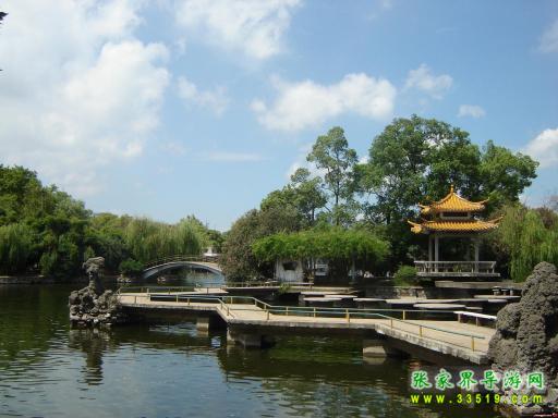 湖內(nèi)亭臺(tái)樓閣,垂柳煙色,湖岸綠色蔥蘢,鮮花妖艷,素有“妙絕 西湖勝虎丘”的美譽(yù)。主要景點(diǎn)有發(fā)源殿、岸花亭、雙壁坊、夕照亭等。