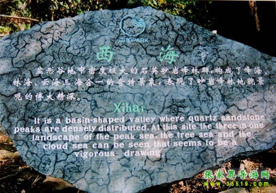 西海位于張家界索溪峪西北,是一個(gè)群山環(huán)抱、深不可測的“桶”形盤谷,有上千座石峰竹筍般密密麻麻插在不到幾平方公里的深川大峽之中,秀麗而神奇。春夏或秋初雨后初晴,則云如浪濤,翻涌奔瀉,鋪天蓋地,極為壯觀,是為“云海”。“三海合一”就是西海的特色。其中通天門、天臺為絕景。