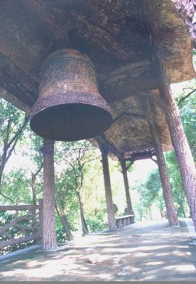 飛來鐘原為君山崇勝寺的古鐘,南宋淳佑五年(公元 1245 年),荊湖安撫制置使孟珙重修崇勝寺時復制一鐘,鐘高一丈多,大數(shù)圍,重4000余斤,上有“淳佑五年造”,鐘身上鑄有“皇帝萬歲,國泰民安,風調(diào)雨順,五谷豐登”16 個大字,四方凸出的部分用青銅澆鑄的四條金龍,栩栩如生,形態(tài)逼真。原鐘在1966 年被砸毀,現(xiàn)在的飛來鐘是1979 年由市閥門廠復制而成,高約2 米,直徑1.2 米,重約 2 噸。鐘身上改鑄著鐘相、楊幺起義的戰(zhàn)斗口號“均貧富,等貴賤”六字,比前者更富有深刻的含義。這口古鐘有段優(yōu)美的傳說。相傳南宋初年,洞庭湖畔數(shù)以十萬計的農(nóng)民在楊幺率領(lǐng)下,掀起了轟轟烈烈的農(nóng)民起義。相傳一天夜晚,朝廷派兵前來偷襲駐扎在君山的楊幺寨,忽然從天上飛來一口巨鐘,鐘聲陣陣,催醒義軍,奮起抗敵,因此叫飛來鐘。這是人們深切懷念楊幺起義軍,用各種方式來表達贊美之情。古鐘的傳說便寄托了人們的這種心情。有人據(jù)此認為,原來的飛來鐘系楊幺起義軍所鑄的報警器。