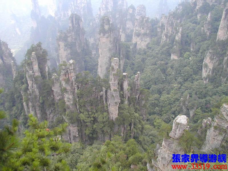 (大觀臺(tái))這就是大觀臺(tái)。極目遠(yuǎn)眺,千百座奇峰盡收眼底。一位詩(shī)人說(shuō),武陵源的砂巖峰林是一步一觀景,千步千造型,一山有四季,十步不同天。專(zhuān)家測(cè)算出武陵源石峰有3103座。一如一位高超的雕塑大師,模擬宇宙萬(wàn)物,無(wú)不形狀逼真,維妙維肖,栩栩如生,呼之欲動(dòng)。有的如海螺出水,有的如金龜銜日,有的如蓮花盛開(kāi),有的如天橋橫空,有的如長(zhǎng)槍刺天,有的如寶塔聳立,有的如老人采藥,有的如玉女梳妝,有的如將軍出征,有的如戰(zhàn)馬長(zhǎng)嘯,有的如情人幽會(huì),有的如夫妻相擁,有的如仙女散花,有的如村姑守望有的孤峰獨(dú)秀,有的直插云霄,有的婷婷玉立,有的威武勇猛,有的小巧玲瓏,有的大氣磅礴。進(jìn)入武陵源,但見(jiàn)一片峰的森林,峰的世界,峰的海洋。挺拔、奇秀、集中、原始、粗獷、古野。這就是武陵源。一位藝術(shù)大師說(shuō):武陵源的山峰,改寫(xiě)了山的概念。大攝影家陳勃說(shuō):“三山五岳堪比美,華夏風(fēng)光每一流。”王繼杰先生說(shuō):“武陵源上三日游,勝讀千篇李杜詩(shī)。”許世杰先生說(shuō):“秀幽險(xiǎn)峻稱(chēng)奇絕,五岳黃山拜下風(fēng)。”李成瑞先生為此大抱不平:“神州勝景誰(shuí)為最?須請(qǐng)霞公重評(píng)勘。”可惜徐霞客無(wú)緣到大觀臺(tái)來(lái),也不可能為武陵源作甚評(píng)價(jià)了。