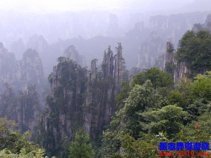 現(xiàn)在我們乘車(chē)前往天子山自然保護(hù)區(qū)。天子山,海拔1262.5米,因當(dāng)?shù)?a class="insidelink" href="http://www.mriyar.com/fengqing/" title="土家族">土家族領(lǐng)袖向大坤被軍擁為“向王天子”而得名。天子山為臺(tái)地地貌,中間高,四周低,因而視野開(kāi)闊,透視線(xiàn)長(zhǎng),層次分明,氣勢(shì)雄渾。天子山觀景,與黃石寨(黃獅寨)、金鞭溪的感覺(jué)不同。游黃石寨(黃獅寨),您是與群峰對(duì)坐,與群峰平視;游金鞭溪,您是“人在畫(huà)圖中”仰視高聳于溪兩岸的群峰;而在天子山,則可俯視大千世界,您會(huì)生出“山上無(wú)山我獨(dú)尊”的無(wú)限豪情。天子山有四大奇觀:峰林、云海、日出、冬雪。一幅幅雄偉壯觀、奇特迷人的景象,相信會(huì)讓大家大飽眼福而流邊忘返。
