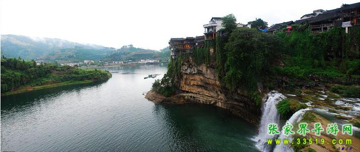 【芙蓉鎮(zhèn)】,該鎮(zhèn)原叫【王村】,因劉曉慶、姜文在此拍攝《芙蓉鎮(zhèn)》電影而享譽(yù)中外。芙蓉鎮(zhèn)是典型的湘西邊陲小鎮(zhèn)的形象,青石板、吊腳樓,集中體現(xiàn)了湘西土家族民居的特點(diǎn)。