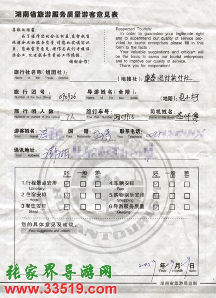 9月26日臺(tái)灣李洪先生一行7人接待質(zhì)量反饋單: