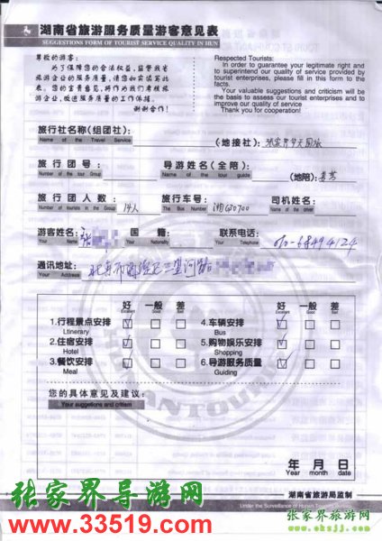 2010年6月26日北京張先生一行14位旅游質(zhì)量反饋