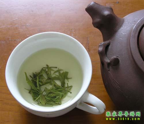 武陵源風(fēng)景區(qū)盛產(chǎn)香茶,著名的有“青巖茗翠”、“龍蝦花茶”、“黃石寨云霧茶”、“天崇毛尖”與“索溪毛尖”等。通過1982年評比,“青巖茗翠”獲部級金杯獎,同年又獲全國首屆食品博覽會銀獎。“龍蝦花茶”也已列入全國名茶。人們經(jīng)過品嘗、評比,并經(jīng)茶葉專家鑒定,一致認(rèn)為“青巖茗翠”、“龍蝦花茶”等具有外形美觀,內(nèi)質(zhì)優(yōu)良等特點(diǎn)。這種茶葉,從外形來看,條索緊結(jié),圓渾彎曲,苗鋒顯露,銀毫滿披,色澤翠綠,從內(nèi)質(zhì)來看,清香馥郁,味醇回甘,湯色綠明,葉底均勻,飲后爽神,具有熟板栗蘭花之奇香,飲后回味無窮。據(jù)考證,“青巖茗翠”屬高山云霧茶一類。自古道:“高山出好水,云霧育佳茶”。黃石寨枇杷界海拔1000多米,氣候溫和,云霧繚繞,溫度適宜,因而,茶葉嫩度高,品質(zhì)好。這種獨(dú)特的環(huán)境為茶葉中的氨基酸,咖啡堿等有效成分的形成和增長,提供了優(yōu)越的生長條件,而對質(zhì)地粗老的纖維素的形成,則又起到了抑制作用。還有,這些山峰上日照短,直射光少,漫射光多,晝夜溫差大,土質(zhì)的有機(jī)質(zhì)豐富,因而結(jié)構(gòu)疏松,排水又好。一切這些因素,都為茶葉的平穩(wěn)生長創(chuàng)造了良好的條件。所以“青巖茗翠”茶,就博得了各地名家的一致好評。湖南省茶葉學(xué)會秘書長、湖南農(nóng)學(xué)院副教授朱先明品了這種茶以后,賦詩贊美: