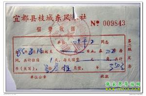 8月14日下午3時,乘坐一輛很破舊的長途車,約3小時顛簸到達宜都枝城鎮(zhèn),即那時通車不久的枝柳鐵路起點,每人2.3元。車票上還印著“最高指示”。