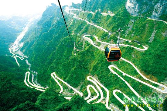 登天門山不需要爬山,至位于張家界市區(qū)的天門山索道下站,乘世界最長高山客運(yùn)索道—天門山索道(長7.5公里)直達(dá)山頂,沿途可先鳥瞰美麗山城的醉人景 致,再飽覽清新靜謐的鄉(xiāng)村田園,然后緩緩飛渡進(jìn)奇峰險(xiǎn)壑的懷抱中,在山尖與陡崖之上不斷爬升,體驗(yàn)騰云飛翔的刺激與震撼,30分鐘到達(dá)天門山頂原始空中花園。